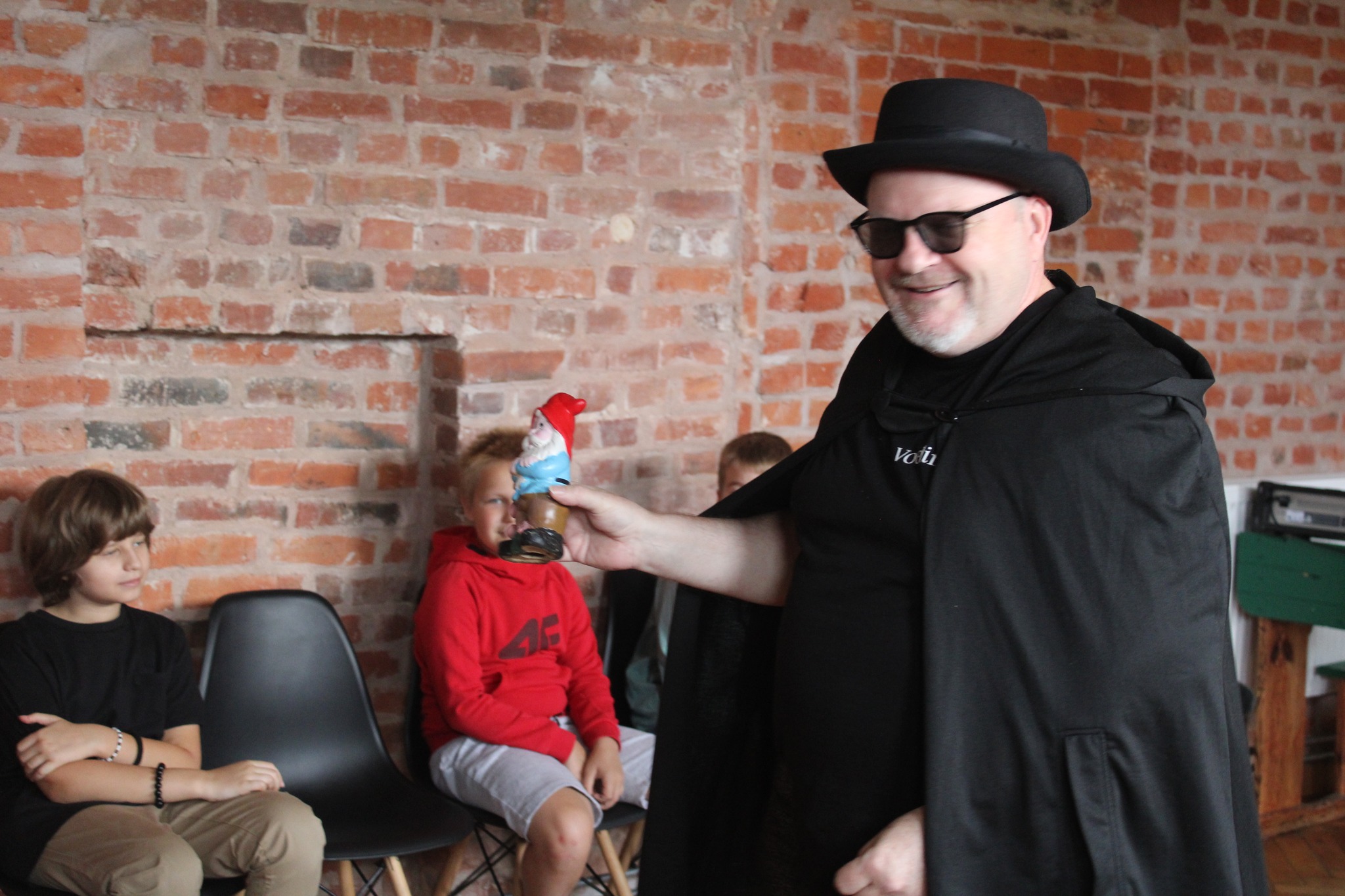 Fotografie z przedstawienia pt. "Gdzie się podziały Darwale" na półkoloniach w Krwonach, organizowanych przez Fundację ze Smakiem